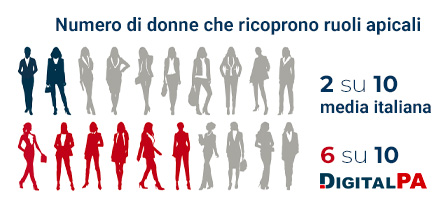 - Il 60% dei ruoli di leadership di DigitalPA è ricoperto da figure femminili